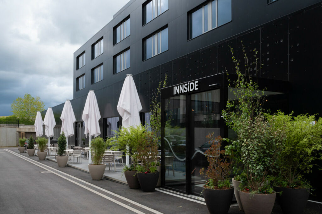 Installer son nouvel hôtel dans un tel quartier, rutilant, dynamique et en plein essor était presqu’une évidence pour le groupe Meliá. «Doté d’une personnalité retentissante, INNSiDE Luxembourg combine le design, la technologie, la convivialité et la durabilité », explique René Grosbusch, propriétaire de INNSiDE Luxembourg. De l’extérieur, le bâtiment, conçu par le bureau d’architectes Jim Clemes Associates, est revêtu de panneaux d’aluminium noir mat et présente un motif composé de différents disques lumineux. Le long des façades principales, de grandes fenêtres lumineuses offrent un aperçu de l’intérieur, à la fois moderne, urbain et élégant