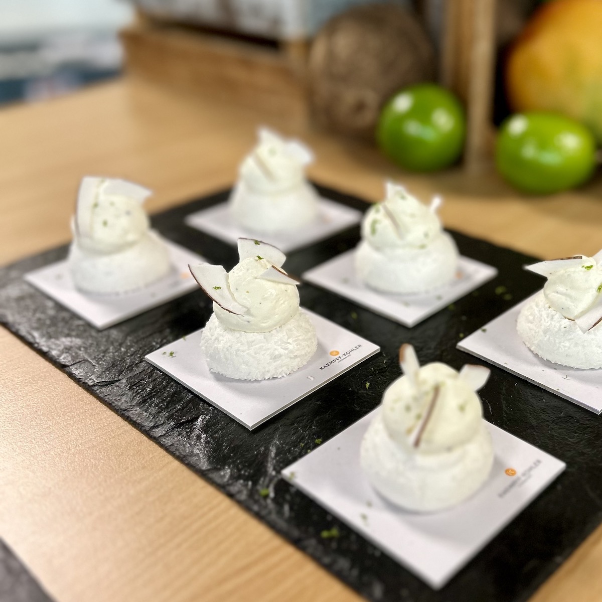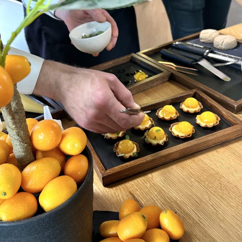 On s’est aussi clairement régalés avec la tartelette explosive au kumquat de Paul Bungert, avec la pavlova coco/mangue de Jonathan Szymkowiak (Kaempff Kohler), avec le simili nigiri aux doux parfums de céleri et de yuzu de Florian Chauvière (Skybar) ou encore avec la gourmandise pralinée toute en légèreté de Thomas Studer (Groupe Steffen)…