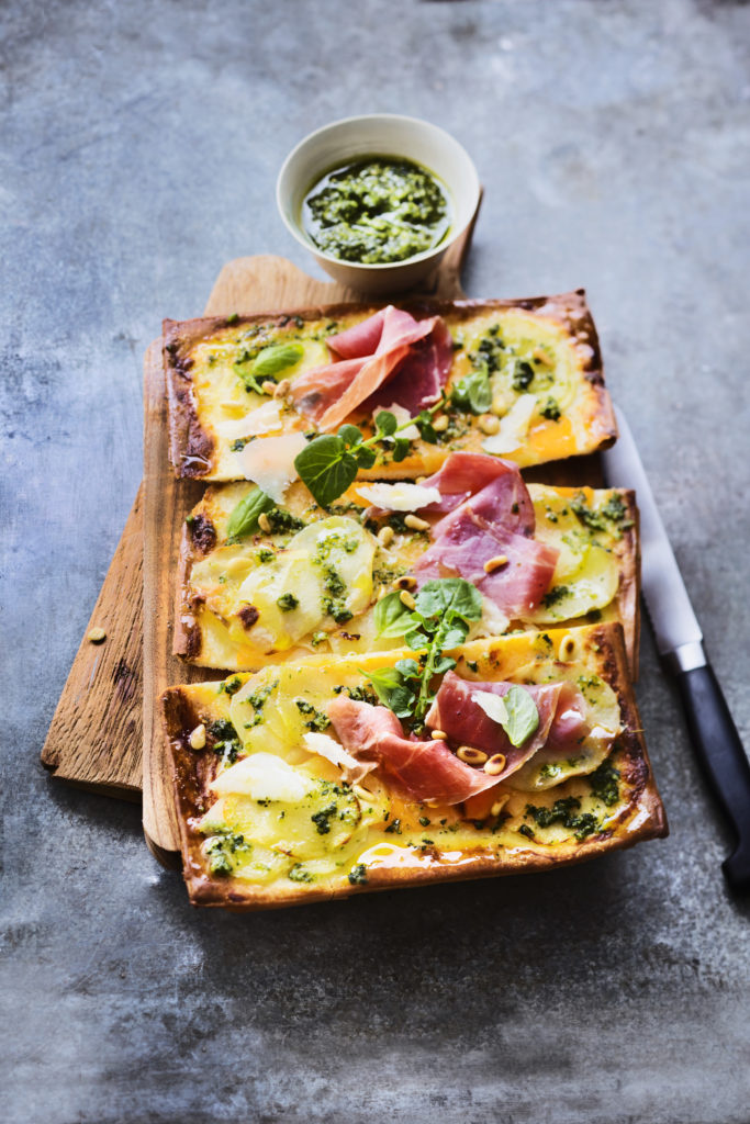 Découvrez la recette de la pizza pomme de terre, butternut et parme