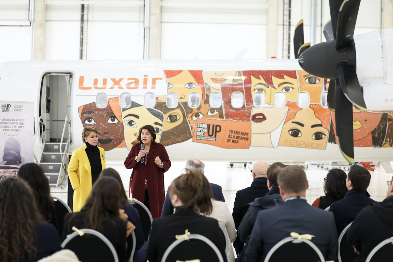 Enfin, la marche organisée au cœur de Luxembourg-ville a réuni personnalités politiques et militantes, pour clamer leur refus des violences faites aux femmes. Ce même jour, un moment historique a marqué les esprits : le lancement d’un partenariat entre Luxair et l’association. Désormais, un avion aux couleurs de Stand Speak Rise Up! et des visages des femmes victimes de violences, sillonnera le monde pour porter un message d’espoir et de justice.